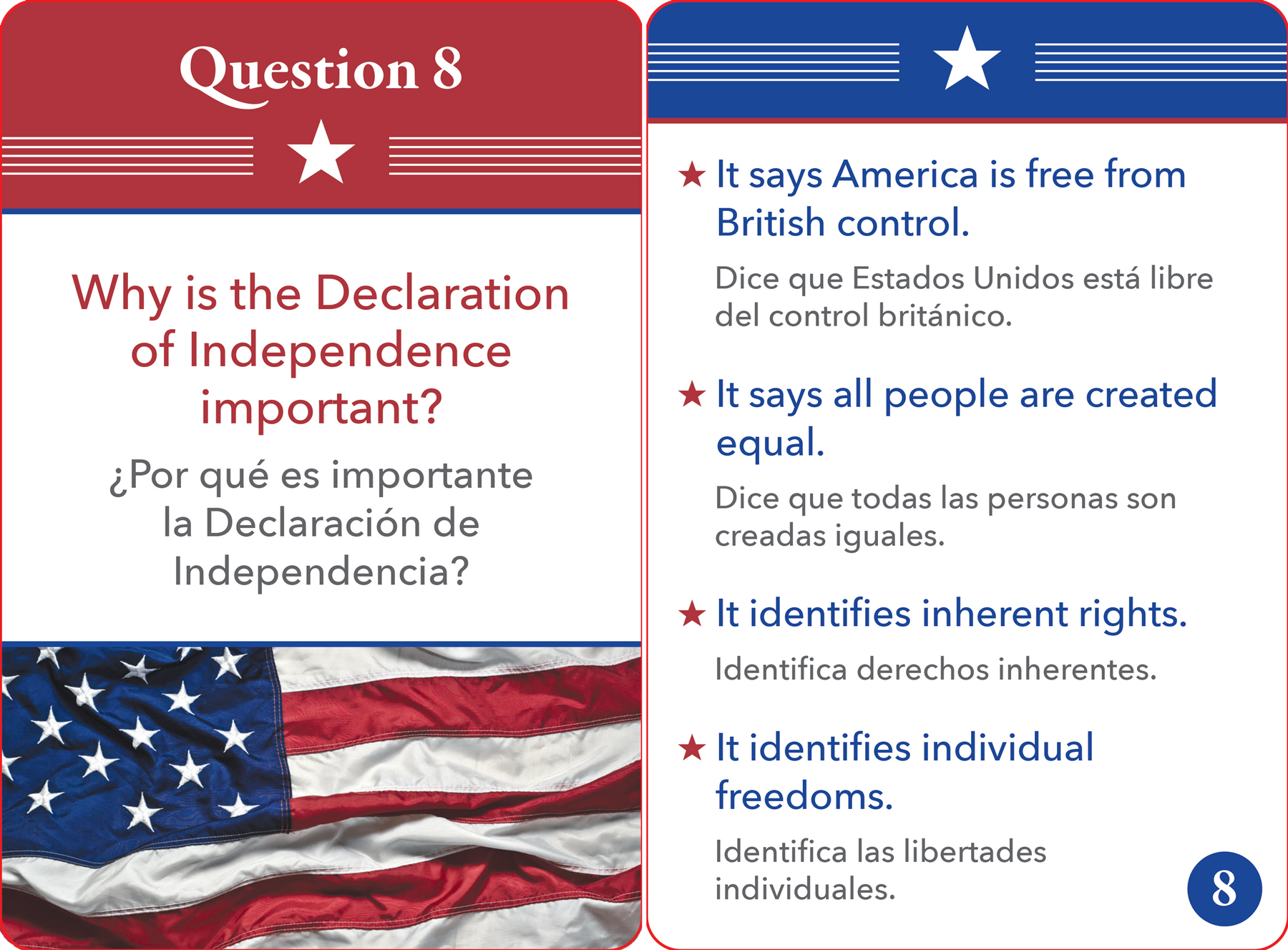 Bilingual US Citizenship Flash Card Set (English/Spanish)