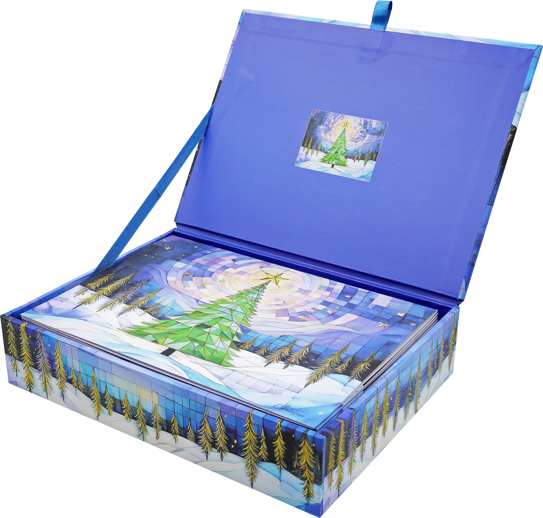 - Deluxe set includes 20 cards and 21 envelopes, presented in a reusable keepsake box.