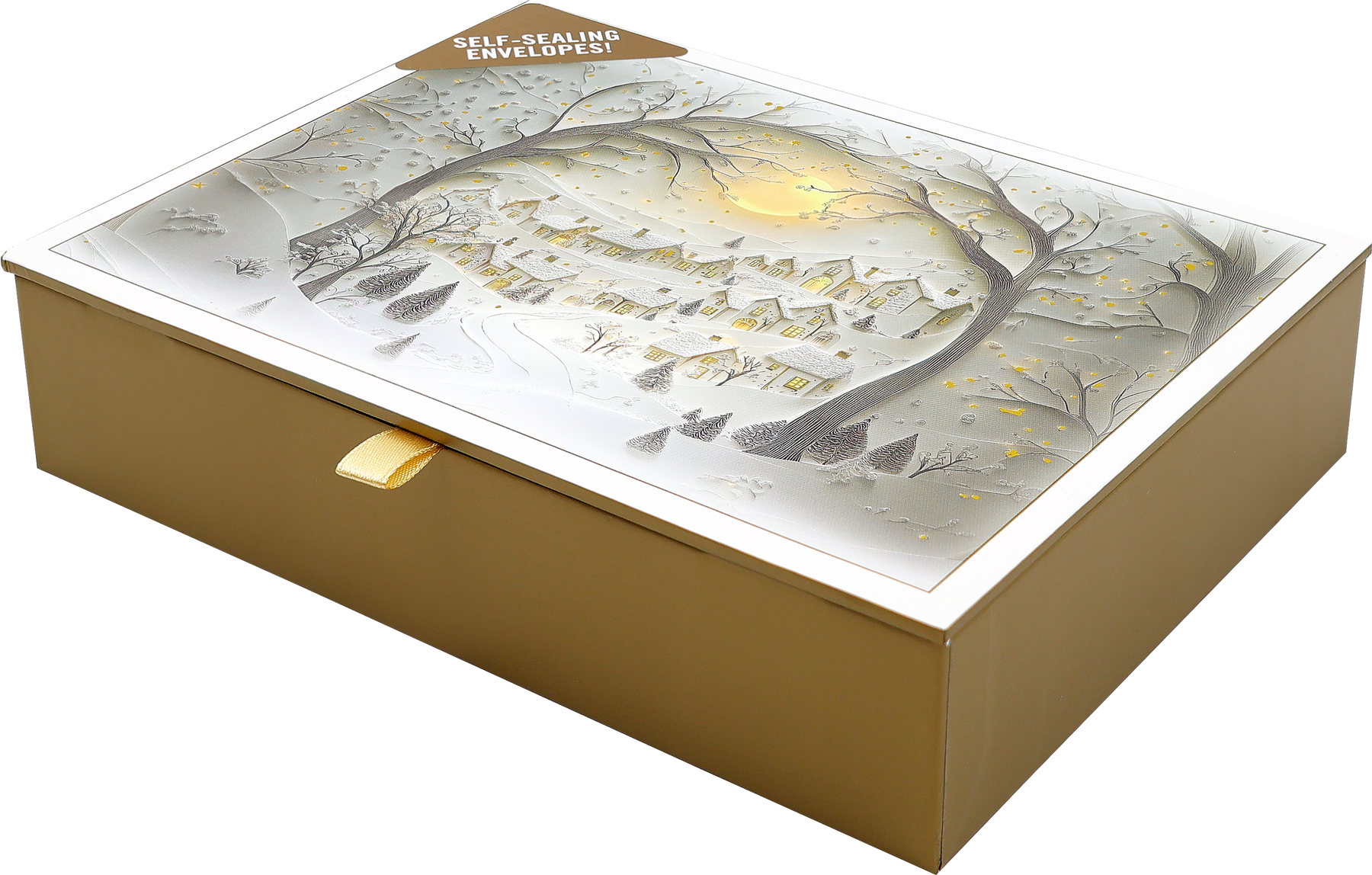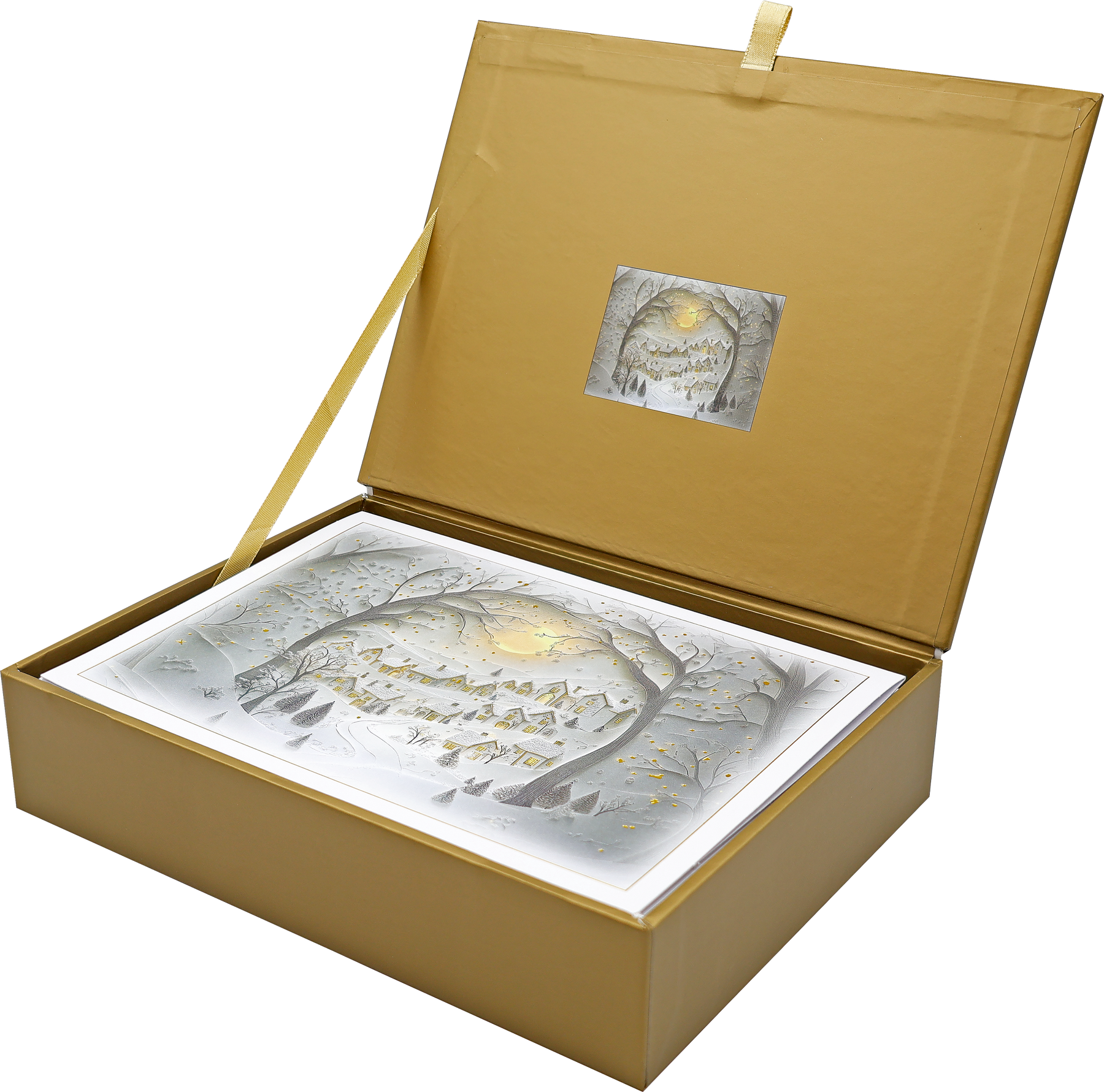- Keepsake box features a reproduction of the card design on the lid, with a miniature version inside.