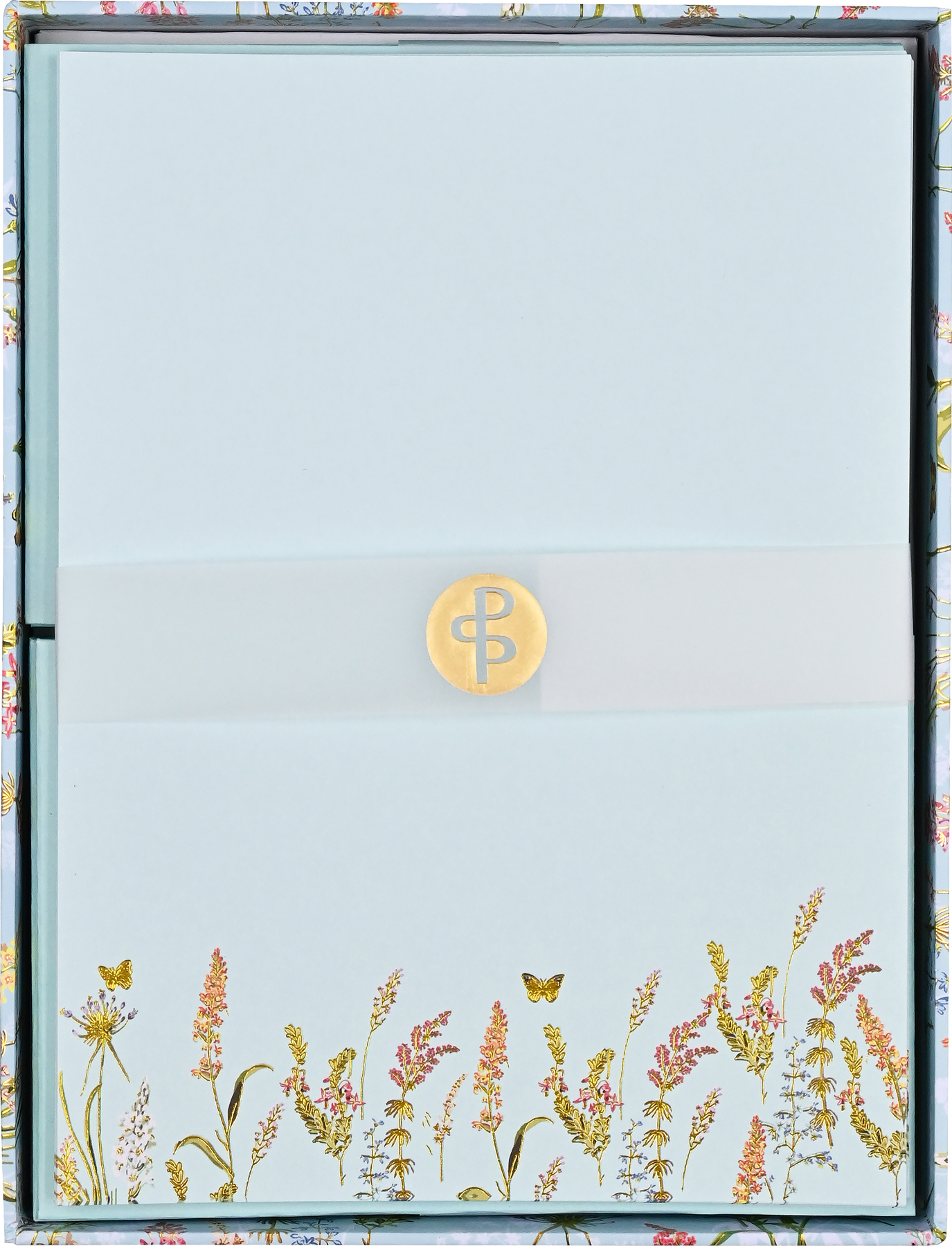 - Premium boxed stationery set contains 30 letter sheets and 24 envelopes.